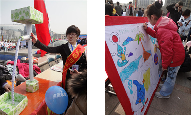 资源与环境学院于3月23日上午在济南市泉城广场参与了由省、市水利局和气象部门主办,历下区税务局和济南时报协办的“山东省暨济南市纪念世界水日、世界气象日大型宣传活动”。
