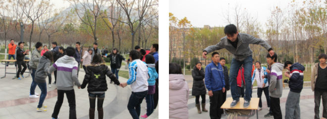 为创造良好的班级文化氛围,增强同学们对心理健康的认识和团结合作意识,资源与环境学院于11月16日至20日组织12级各班级分别召开心理主题班会。此次主题班会走出课堂,走向户外,通过形式多样的户外游戏,让同学们在彼此接触和深入了解的同时增进友谊,加强信任。