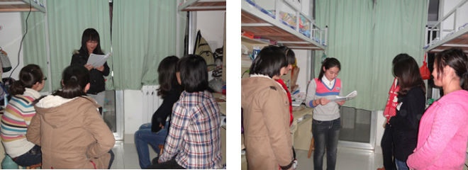 宿舍管理新办法,由学生党员向同学们详细讲解《资源与环境学院宿舍综合测评实施办法》、《学生宿舍安全公约》,充分落实《学生党员联系寝室责任书》,采用党员联系制度,即学生党员以“就近原则”负责联系本寝室及邻近的若干个寝室,扮演好安全员、协调员、汇报员的角色。通过规范的制度约束学生的行为,增强组织纪律观念,养成良好的生活习惯,从而形成积极向上的宿舍文化氛围。