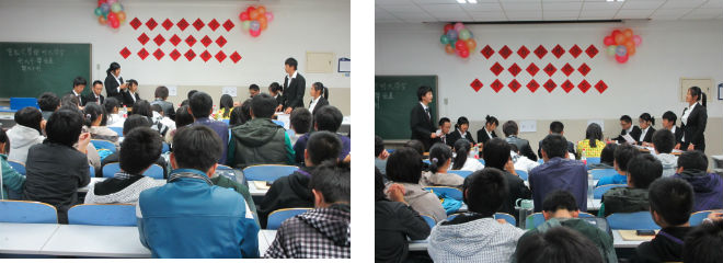 本晚比赛共分两场,晚上六点半,比赛正式开始。第一场比赛的战火由环安1205班和环安1207班点燃,他们以“宽松式管理对大学生利大于弊还是弊大于利”为论题展开慷慨激昂的论述,继双方充满理性色彩的自我观点介绍后,比赛进入立论环节。正方以提供宽松生活环境、自由发展个人能力等方面为切入点,用通俗幽默的语言陈述了己方“宽松式管理利大于弊”的观点。反方则从管理体制松懈、发展不确定性等方面出发,进行层层剖析,论证己方弊大于利的观点。在随后的攻辩环节中,双方更是争锋相对,唇枪舌战,现场气氛迅速升温。第二场比赛于八点半准时开赛,环安1204班和环境1204班两方辩手以犀利的发问和精准的反驳赢得现场观众的阵阵掌声。尤其在自由论辩环节,双方妙语连珠,毫不示弱,辩手们清晰的思路和巧妙的陈词给观众留下了深刻的印象。环安1207班、环境1204班获得了最终的胜利 。
