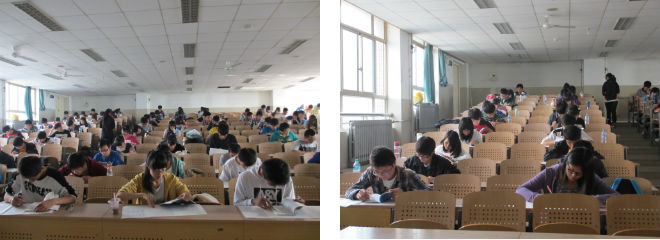 在11教6501、6502、3501和3502面向大一全体学生进行了关于《学生手册》知识的入学考试。