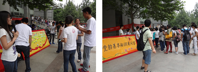 此次“党的知识有奖问答”活动的顺利举行,不仅宣传党的基本知识,将学习党知识的范围和对象扩大化,使广大同学受到爱国主义教育;同时有利于提升学院内部党员的自身素质,使广大党员要深刻认识到开展创先争优活动的现实意义和紧迫性,切实增强政治责任感和历史使命感,进一步调动和激发广大党员积极性和创造性。