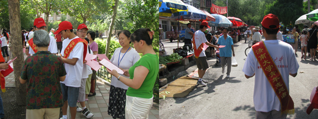 为迎接全运会的到来,响应济南市创建精神文明城市的号召,城市发展学院“三下乡”社会实践服务分队于7月15日为舜园社区精神文明建设作宣传。